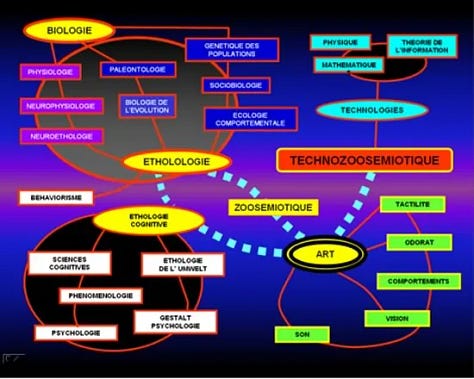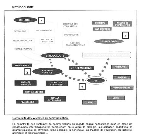 Ce que lâartiste appelle âart-taxonomiqueâ, pourrait agir comme une discipline compagne de la pataphysique de Baudrillard. Dans les schĂ©mas et les fulgurances de Louis Bec, le sens se dissout lui aussi. Dans cette discipline scientifique fabulatoire, le zoosystĂ©micien est autant Ă lâĂ©tude que ses sujets dâĂ©tudes et de pensĂ©e, qui, eux, sont ses crĂ©ations. Lâartiste conçoit ici une nouvelle discipline poĂ©tique et scientifique qui permet dâexplorer et dâexpĂ©rimenter le schĂ©ma de la pensĂ©e moderne et taxonomique, qui fige le sens des choses et tente depuis bien longtemps un recensement exhaustif de lâunivers.