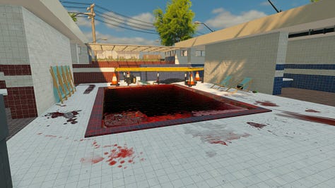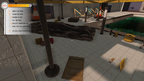 Si le jeu commence de maniĂšre trĂšs classique, la situation glisse trĂšs vite dans le sang et la boue. Le salaire du joueur augmente graduellement tandis quâon lui propose de nettoyer des scĂšnes de crimes (les meurtres ayant eu lieu au bord de piscines, Ă©videmment). On est ainsi incitĂ© Ă devenir complice contre de lâargent, et ce qui semble ĂȘtre un titre oĂč lâon joue Ă travailler pour la bourgeoisie devient finalement une maniĂšre dây Ă©chapper Ă un systĂšme capitaliste et de sortir des sentiers battus. On fait de lâargent noir, on bosse au black, on planque des cadavres et donc on dĂ©capitalise bien notre temps libre en dehors du systĂšme (ou dâune reprĂ©sentation du systĂšme).