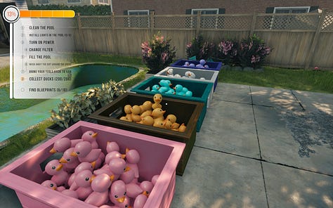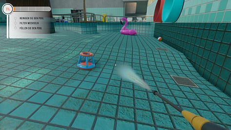 On a promis Ă Duckey1230 une belle prime si il rĂ©curait la piscine de ces anonymes bourgeois qui habitent dans une maison de Sims aux intĂ©rieurs Ă©ternellement vides. Mais ce Fuck subliminal Ă©tait visiblement pour lui bien plus pertinent que de simplement remplir Ă bien sa mission contre un petit pĂ©cule, peut-ĂȘtre parce que lâĂ©conomie interne mise en place au sein de Pool Washing Simulator nâest pas gratifiante pour rĂ©ussir Ă obtenir la force de travail des joueurs.